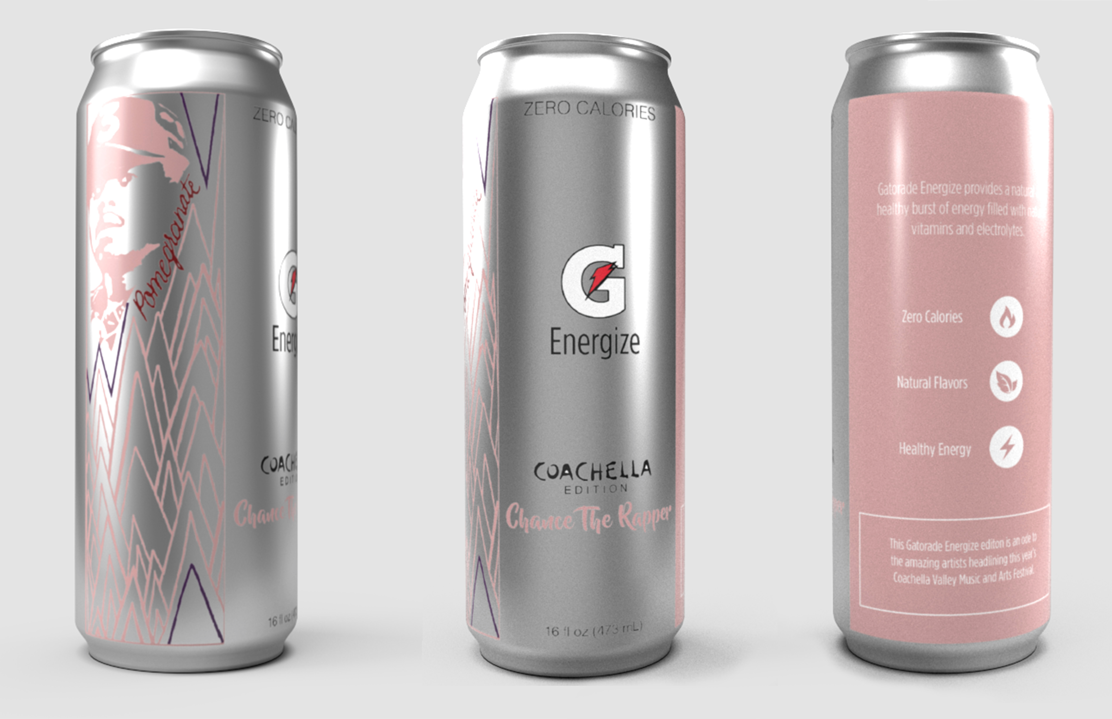 Gatorade can. Packaging Design project created in Illustrator, Photoshop and Dimensions.